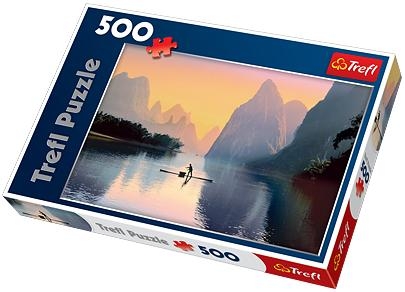 Puzzle 500 elementów z widokiem na spokojną rzekę Lijang. Po ułożeniu powstanie obrazek o wymiarach 48x34cm. Wysoką jakość, nasycenie kolorów i bezpieczeństwo układania zapewnia kalandrowany papier odbijający światło, pokryty ekologicznymi farbami spożywczymi.