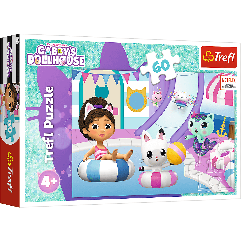Gabby na basenie to puzzle składające się z 60 elementów, zaprojektowane z myślą o małych fanach bajki Koci Domek Gabi. Po ułożeniu układanki powstanie obrazek o wymiarach 330x220 mm.