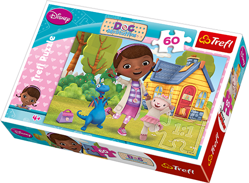 Puzzle 60 elementów z bohaterami serialu animowanego Disneya "Klinika dla pluszaków". Po ułożeniu powstanie obrazek o wymiarach 33x22 cm. Wysoką jakość, nasycenie kolorów i bezpieczeństwo układania zapewnia kalandrowany papier odbijający światło, pokryty ekologicznymi farbami spożywczymi.