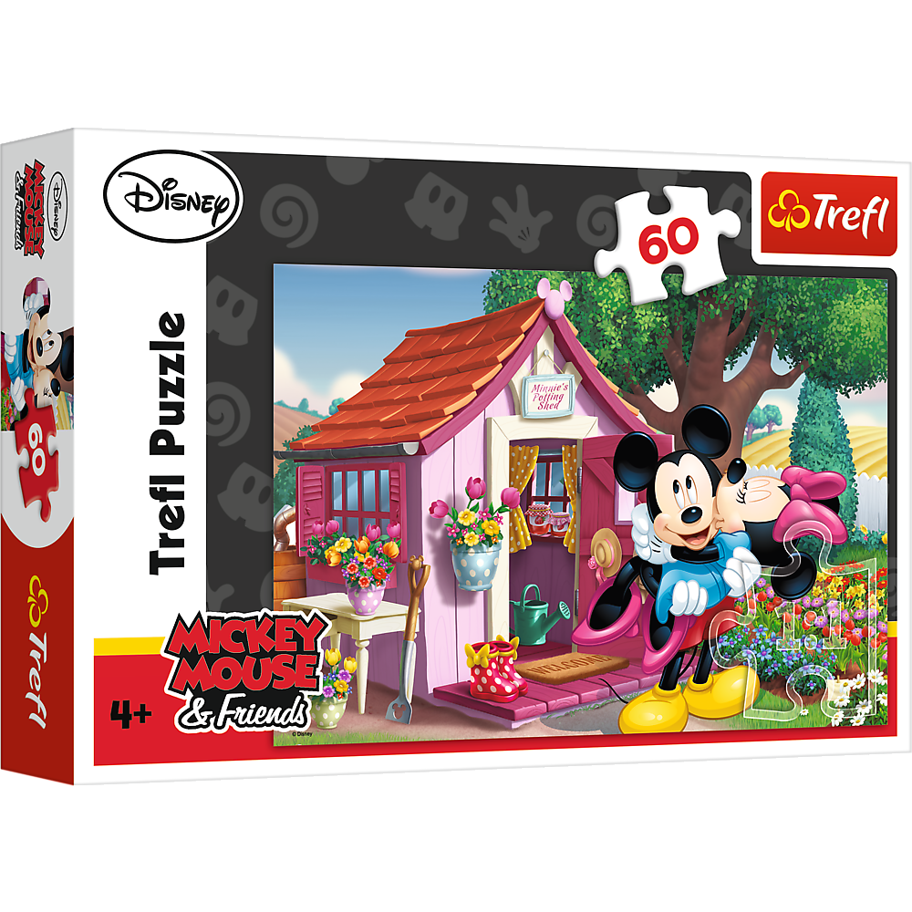 Puzzle 60 elementów z Mikim i Minnie . Po ułożeniu powstanie obrazek o wymiarach 33x22 cm. Wysoką jakość, nasycenie kolorów i bezpieczeństwo układania zapewnia kalandrowany papier odbijający światło, pokryty ekologicznymi farbami spożywczymi.