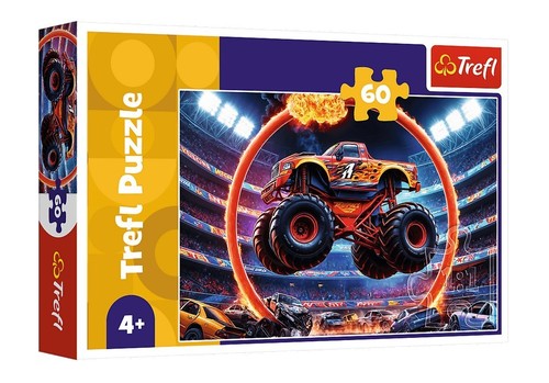 Monster truck to puzzle składające się z 60 elementów, zaprojektowane z myślą o małych fanach motoryzacji. Po ułożeniu układanki powstanie obrazek o wymiarach 330x220 mm.