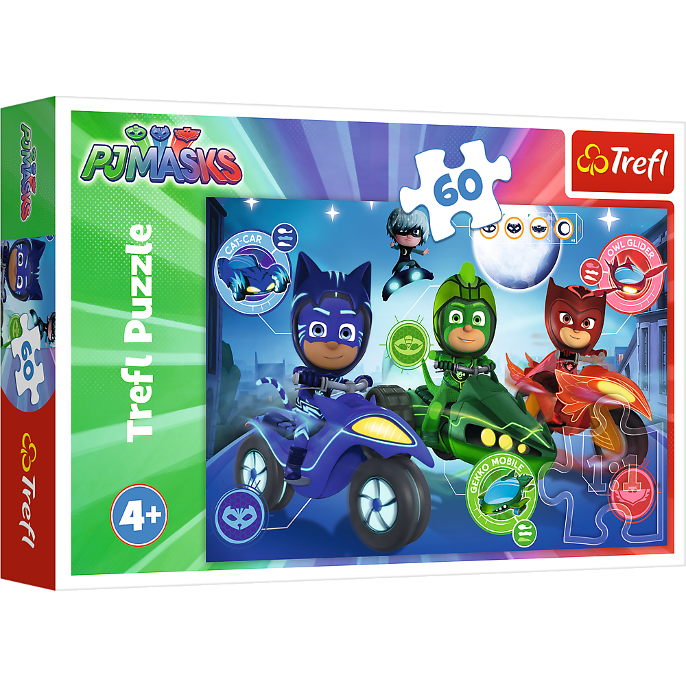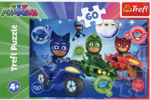 Puzzle przedstawiają bohaterów bajki Pidżamersi. Po ułożeniu powstanie obrazek o wymiarach 33.0 x 22.0 cm.