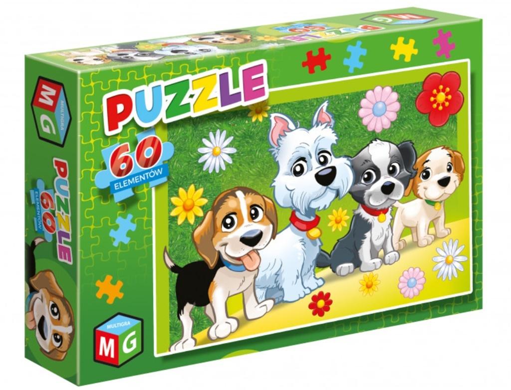 Puzzle rozwijają zdolności manualne, pobudzają ciekawość, spostrzegawczość oraz zdolność kojarzenia. Układanie puzzli to dla dzieci dobry trening zręczności, myślenia, percepcji i właściwego kojarzenia koloru i kształtu. Z 60 elementów układanki można ułożyć obrazek o wymiarach 33 x 22 cm.