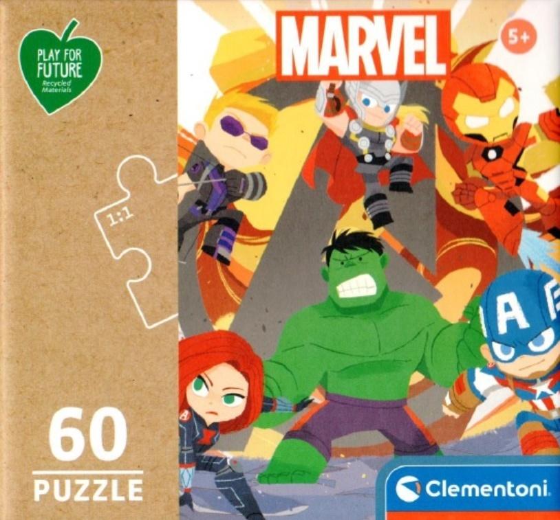 Puzzle wykonane z materiałów pochodzących z recyklingu. Produkt stworzony w trosce o zrównoważony rozwój, oznaczony symbolem liścia w kształcie serca. Stymulują zręczność i wyobraźnię dziecka, dając mu swobodę tworzenia i wymyślania historii w towarzystwie ulubionych bohaterów. Wymiar układanki 33,5 x 23,5 cm
