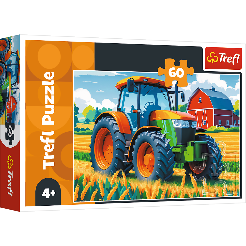 Pojazd rolnika to puzzle składające się z 60 elementów, zaprojektowane z myślą o małych fanach motoryzacji. Po ułożeniu układanki powstanie obrazek o wymiarach 330x220 mm.