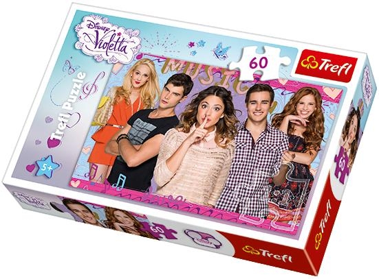 Puzzle 60 elementów z bohaterami popularnego wśród dziewczynek serialu ""Violetta"". Po ułożeniu powstanie obrazek o wymiarach 33x22cm. Wysoką jakość, nasycenie kolorów i bezpieczeństwo układania zapewnia kalandrowany papier odbijający światło, pokryty ekologicznymi farbami spożywczymi.