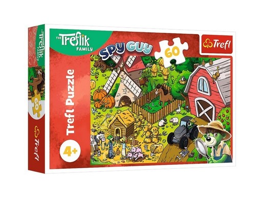 Trefliki na farmie to puzzle składające się z 60 elementów, zaprojektowane z myślą o małych fanach wiejskiego życia. Puzzle przedstawiają Trefliki opiekujące się zwierzętami gospodarskimi. Po ułożeniu układanki powstanie obrazek o wymiarach 330x220 mm.
