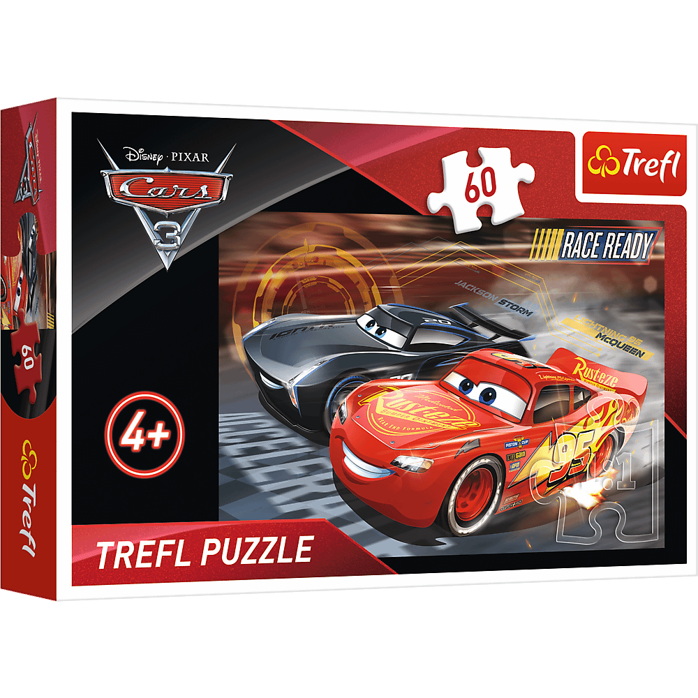 Puzzle 60 elementów z postaciami filmu animowanego Cars 3. Po ułożeniu powstanie obrazek o wymiarach 33x22 cm. Wysoką jakość, nasycenie kolorów i bezpieczeństwo układania zapewnia kalandrowany papier odbijający światło, pokryty ekologicznymi farbami spożywczymi.