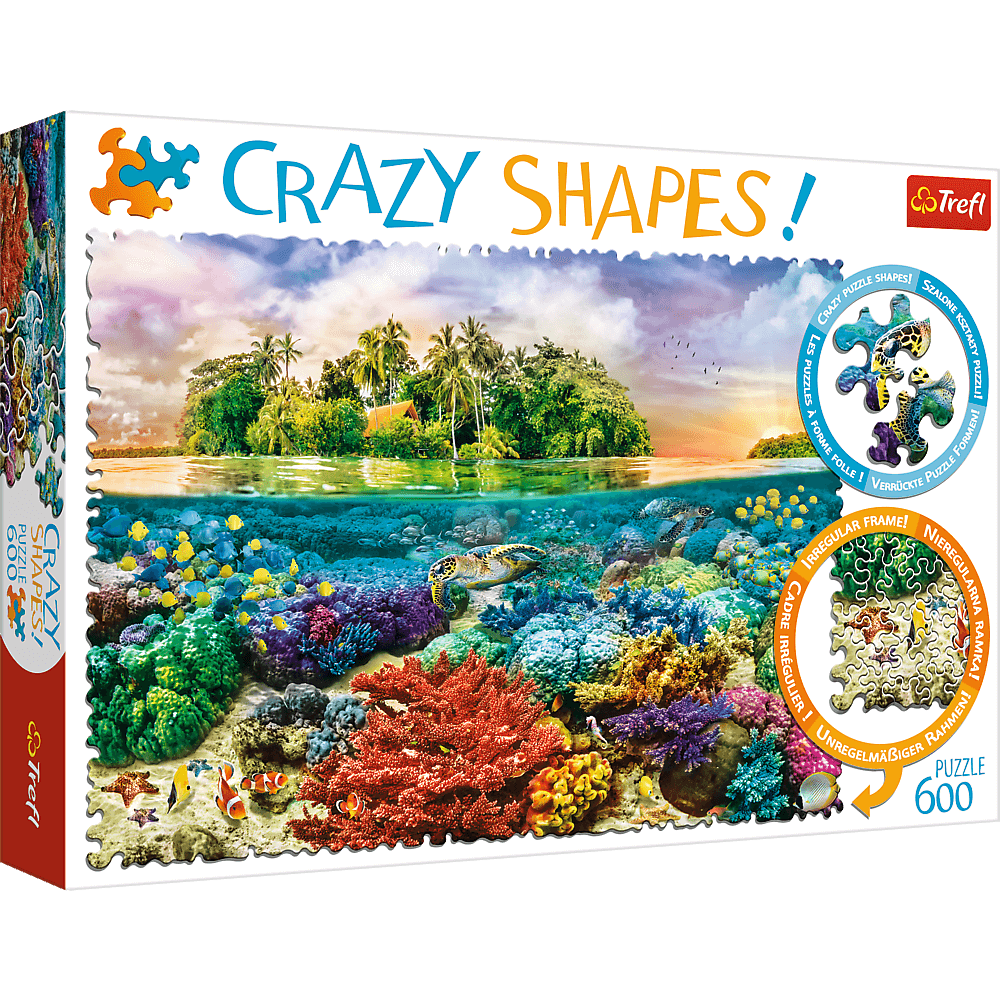 Puzzle Tropikalna wyspa z serii Crazy Shapes zostały stworzone przez cieszącą się dużym zaufaniem rodziców, polską markę Trefl.