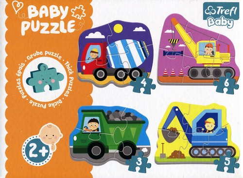 Puzzle Baby z pojazdami miejskimi to duże układanki z grubego kartonu przeznaczone dla najmniejszych dzieci, są idealne do rozpoczęcia przygody z układaniem puzzli.