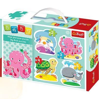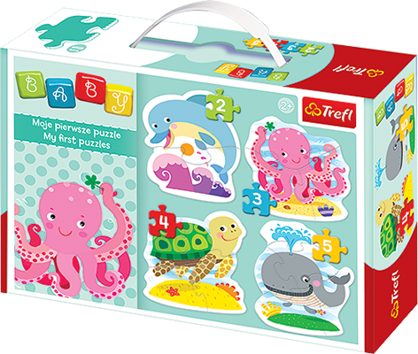 W każdym opakowaniu znajdują się puzzle konturowe, które są podzielone na 2,3,4 lub 5 klocków. Tektura o grubości 4 mm sprawia, że manipulowanie klockami i ich dopasowanie przez najmłodsze dzieci jest bardzo proste, bezpieczne i przynosi wiele radości!
