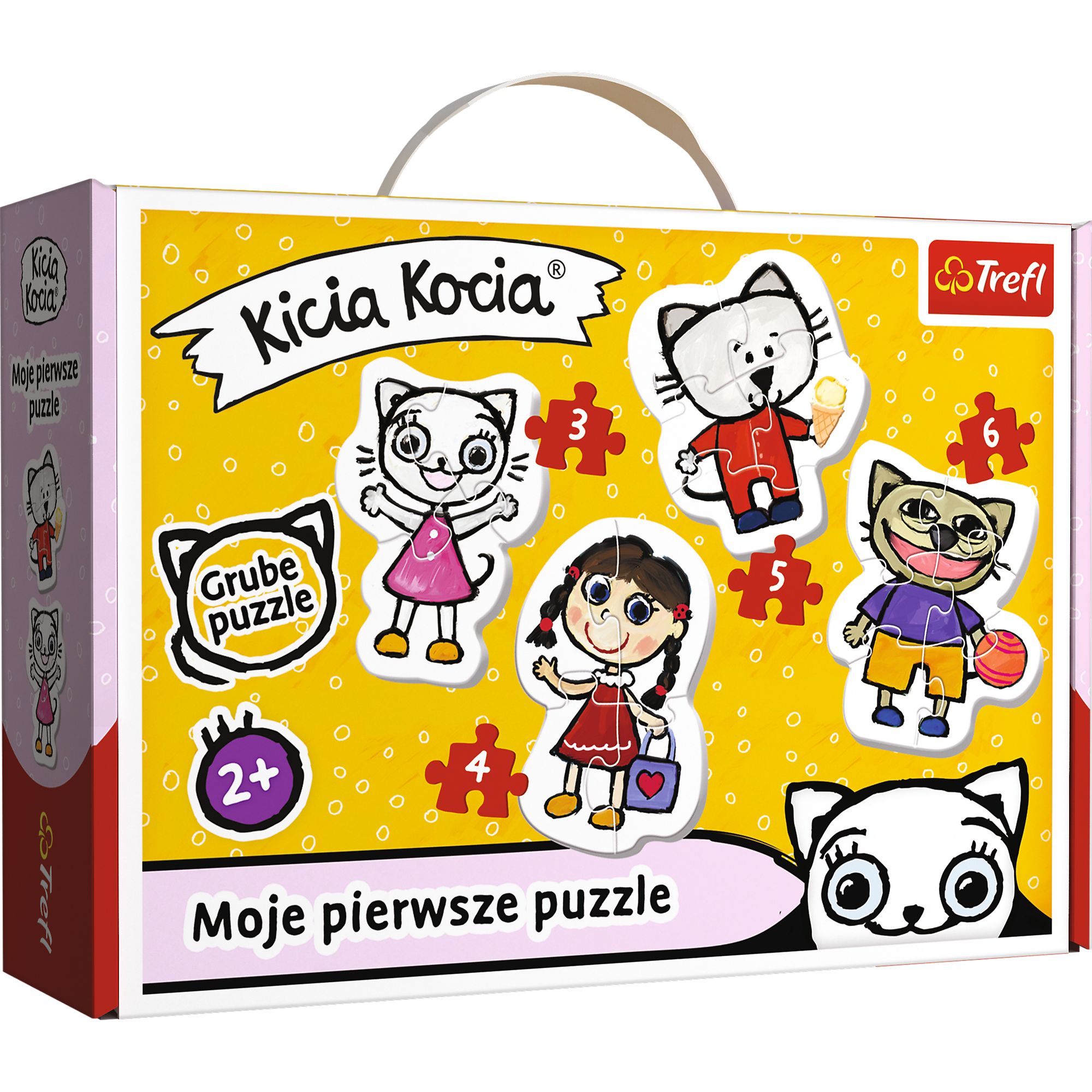 Puzzle Baby z Kicią Kocią to duże układanki z grubego kartonu przeznaczone dla najmniejszych dzieci, są idealne do rozpoczęcia przygody z układaniem puzzli.
