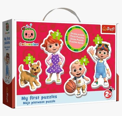 Cocomelon z seri Moje pierwsze puzzle to puzzle składające się z 14 grubych elementów (oddzielne układanki po 2, 3, 4 i 5 elementów), zaprojektowane z myślą o wszystkich najmłodszych miłośnikach przygód Cocomelon, a więc dzieci od 2 roku życia.