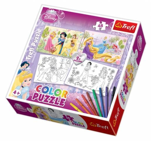 TREFL - świat puzzli, w którym nuda nie istnieje. Są źdródłem zabawy i przyjemności.To podarunek dla każdego - dziecka i dorosłego. Zapraszamy na niesamowite chwile z puzzlami Trefl. Color Puzzle to wspaniałe dwustronne układanki, które nigdy się nie znudzą! Kiedy już dzieci ułożą puzzle, mogą ułożyć drugą stronę układanki i pięknie ją pokolorować. Zapraszamy najmłodszych do kolorowej zabawy puzzlowej, która pobudza kreatywność i wyobraźnię! W skład zestawu wchodzą dwie 48-elementowe, dwustronne układanki oraz flamastry.