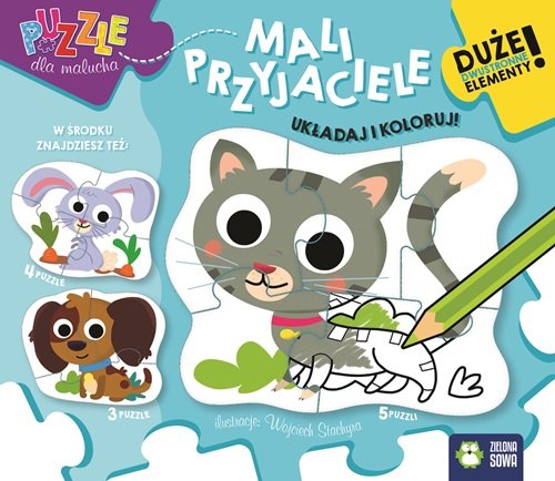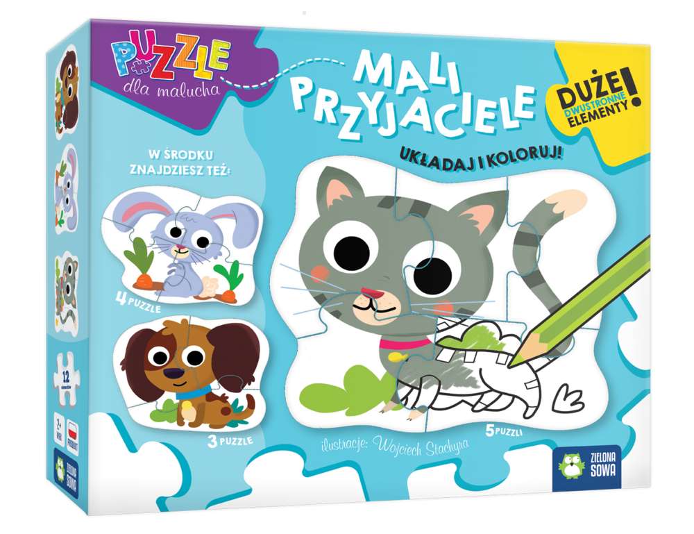 Seria wyjątkowych puzzli dostosowanych są do umiejętności małych dzieci, które rozwijają swoje zdolności manualne i poszerzają wiedzę o świecie. W pudełku znajdują się 3 układanki. Każda z nich składa się z innej liczby puzzli – 3, 4 lub 5 elementów – każda kolejna to większe wyzwanie! Duże, sztywne elementy i zaokrąglone rogi to gwarancja jakości i bezpieczeństwa. Dodatkowo na odwrocie puzzli znajduje się kolorowanka!