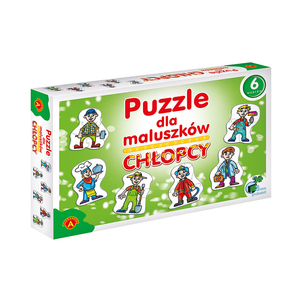 Oto początek dziecięcej przygody z puzzlami. Atrakcyjna kolorystyka, proste, przyjemne dla dzieci formy oraz duże i nieskomplikowane klocki pomagają dzieciom w prawidłowym rozwoju. Dzięki grubośći 3 mm puzzli maluszkom łatwo będzie chwytać i dopasować do siebie poszczególne elementy. Każdy zestaw składa się z 6 obrazków, które są podzielone odpowiednia na : 2,3,4,5,6, i 7 klocków, co umozliwia stopniowanie poziomu trudności.