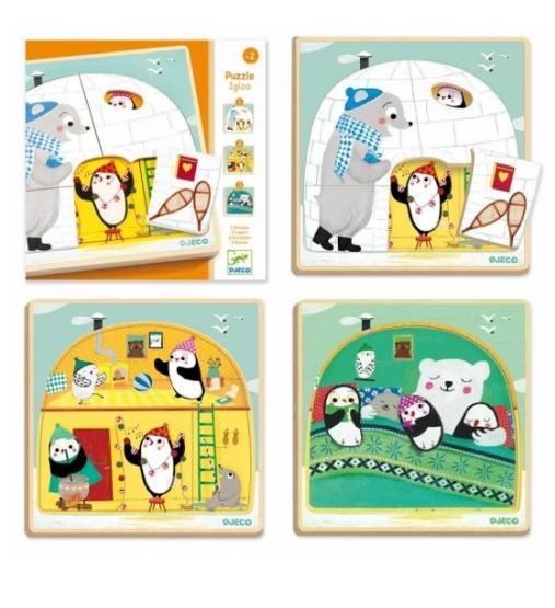 Puzzle trzy warstwowe Igloo to nowa propozycja znanej i cenionej firmy Djeco. Kolorowe puzzle z polarnymi zwierzątkami to trzy różne obrazki do odkrycia z zabawnymi scenkami. Wiek : 2+ 9 elementów Wymiary: 21x 21 x 1,6 cm Wymiary opakowania: 22,6 x 22,6 x 2,5 cm