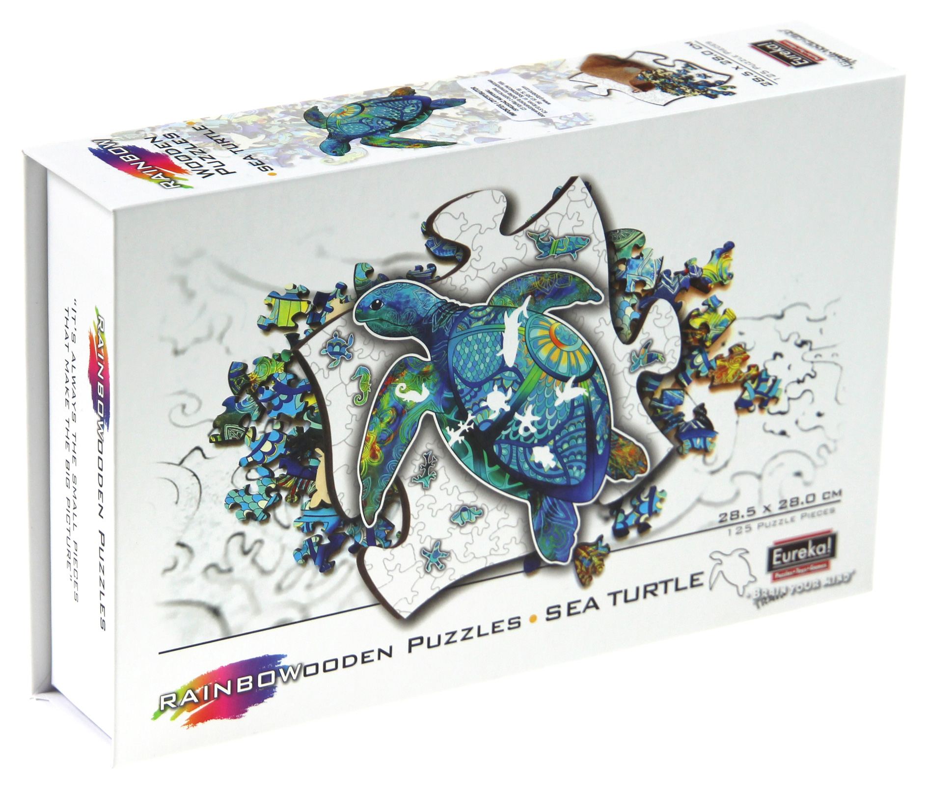 Nowa seria Rainbow Wooden to drewniane, kolorowe puzzle. Do wyboru jest dwanaście unikalnych wzorów zwierząt. Zmierz się z niecodziennymi kształtami puzzli - dodatkowo każdy wzór posiada kilka elementów, które mają kształt zwierząt lub przedmiotów! Ich odnajdywanie to wspaniała zabawa! Pomysłowa forma, staranne wykonanie (drewniana sklejka o grubości 4 mm) i szeroka paleta kolorów (druk UV charakteryzuje się wiernym odwzorowaniem kolorów grafiki) sprawiają, że puzzle będą idealnym elementem dekoracji każdego pomieszczenia. Eureka 3D Puzzle jest cenionym producentem łamigłówek w Europie. Różnorodny asortyment, niezmienna dbałość o wysoką jakość wykonania oraz duża troska o estetykę i wartość intelektualną oferowanych produktów zjednały firmie uznanie na całym świecie. Wszystkie prezentowane łamigłówki świetnie sprawdzają się w zróżnicowanym towarzystwie. Bawią, uczą, zmuszają do myślenia i uwolnienia twórczej wyobraźni. Pozwalają na znalezienie "wspólnego języka" ludziom w różnym wieku i stają się początkiem wielkiej pasji, często łącząc całe rodziny wokół wspólnego hobby. Sprawdź, czy poradzisz sobie z rozwiązaniem rewelacyjnych łamigłówek belgijskiej firmy Eureka. A może masz wrodzoną zdolność do rozwiązywania zadań logicznych? Rozwiązujesz je szybciej niż inni? Proponujemy zapoznanie się z szalenie pomysłowymi i bardzo dobrze wykonanymi łamigłówkami, których rozwiązanie zapewni Ci godziny fantastycznej zabawy. W naszej ofercie prezentujemy łamigłówki logiczne dla osób w każdym wieku. Gwarantujemy duże zainteresowanie i udaną zabawę. ZAWARTOŚĆ: puzzle 125 elementów lniany woreczek