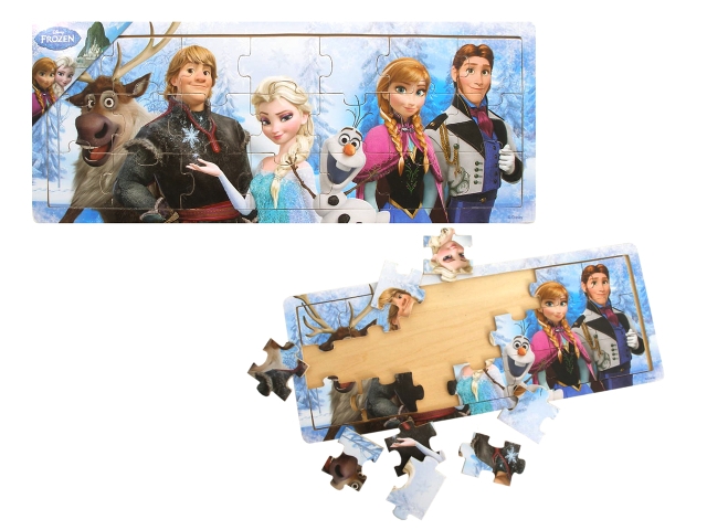 Drewniana układanka na podstawce z bohaterami filmu animowanego Kraina Lodu.