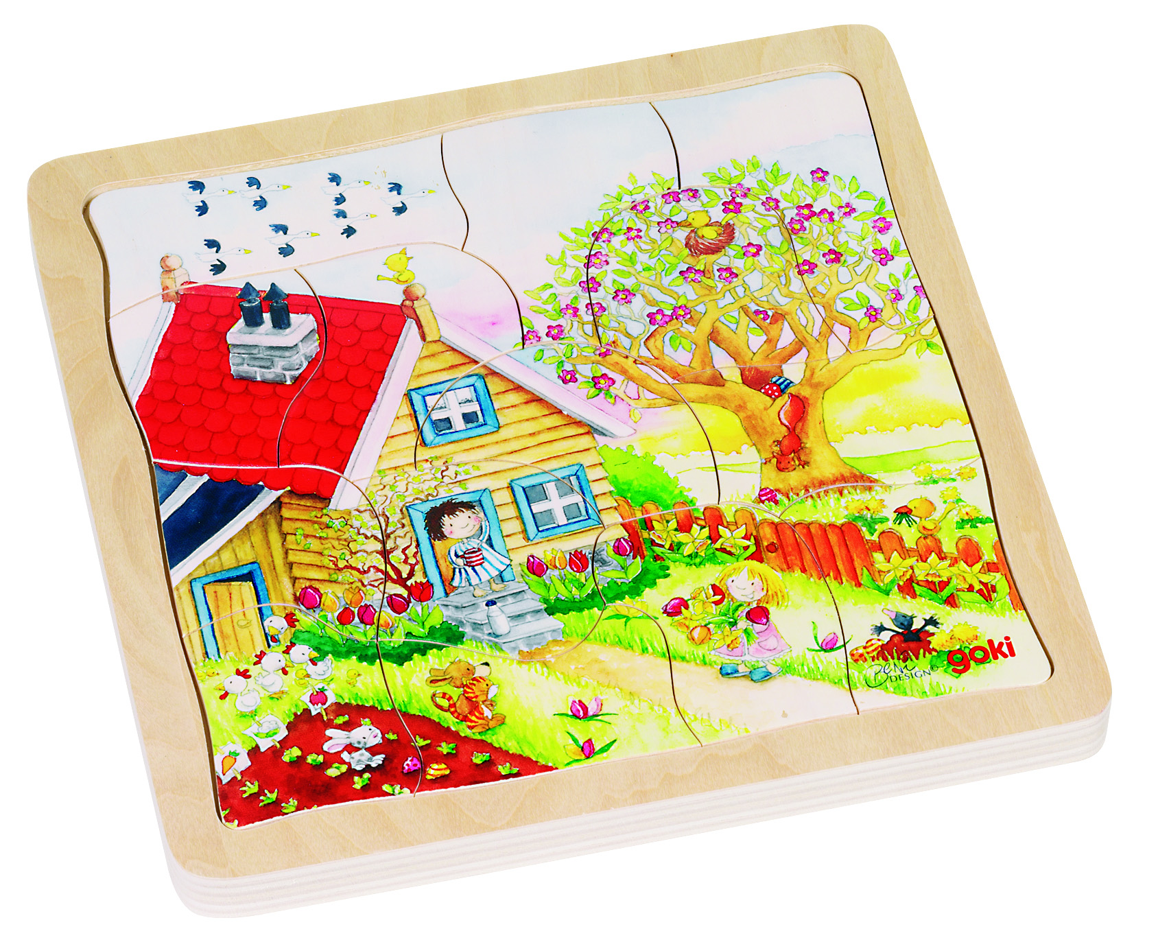 Poznaj pory roku! Jak zmienia się natura i otaczający cię świat wraz z upływem czasu? Ułóż układankę, a dowiesz się, jak wygląda domek dziewczynki wiosną, latem, jesienią, a jak zima?
