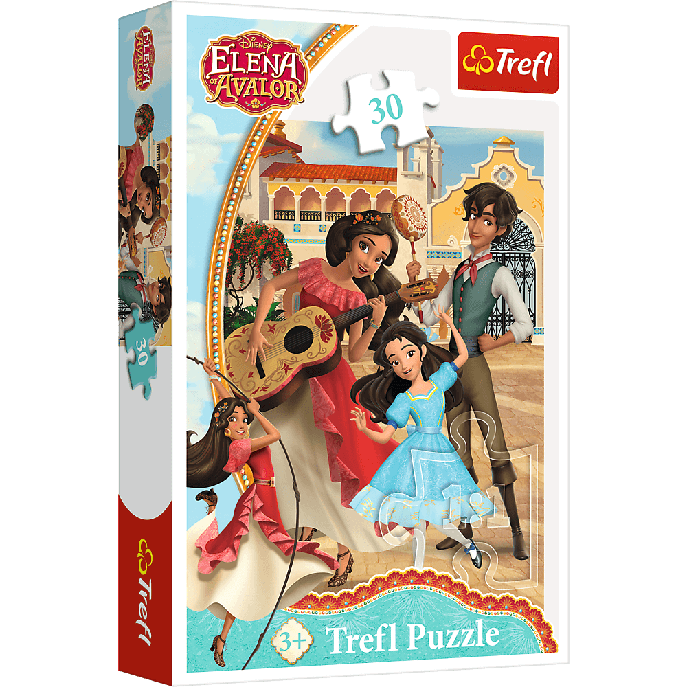 Puzzle 30 elementów bohaterami bajkiElena z Avaloru. Po ułożeniu powstanie obrazek o wymiarach 20x27cm. Wysoką jakość, nasycenie kolorów i bezpieczeństwo układania zapewnia wykorzystanie materiałów ekologicznych.