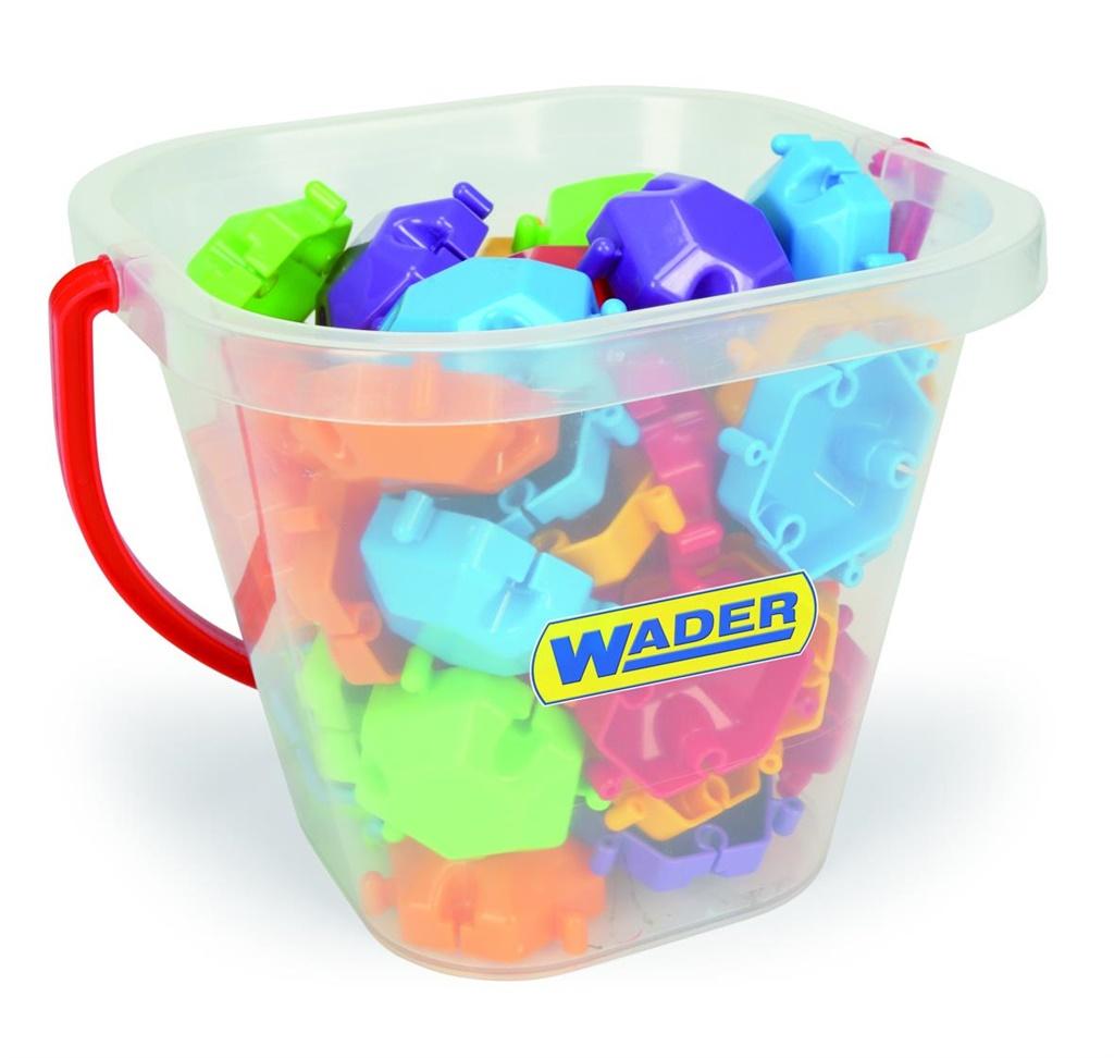 System montażu ułatwia wzajemne łączenie elementów, dzięki czemu dzieci mogą stworzyć oryginalne budowle, pojazdy, zwierzątka, cyferki, literki, figury geometryczne i wiele innych ciekawych kształtów. Puzzle posiadają poręczne kwadratowe wiaderko z uchwytem, które ułatwia ich przechowywanie.