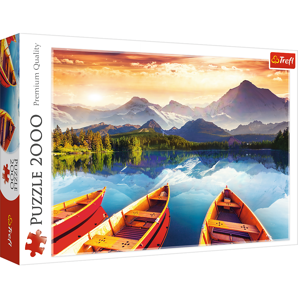 Puzzle 2000 elementów z malowniczym widokiem na kryształowe jezioro i stojące przy brzegu łódki. Po ułożeniu powstanie obrazek o wymiarach 96x68cm. Wysoką jakość, nasycenie kolorów i bezpieczeństwo układania zapewnia wykorzystanie materiałów ekologicznych.