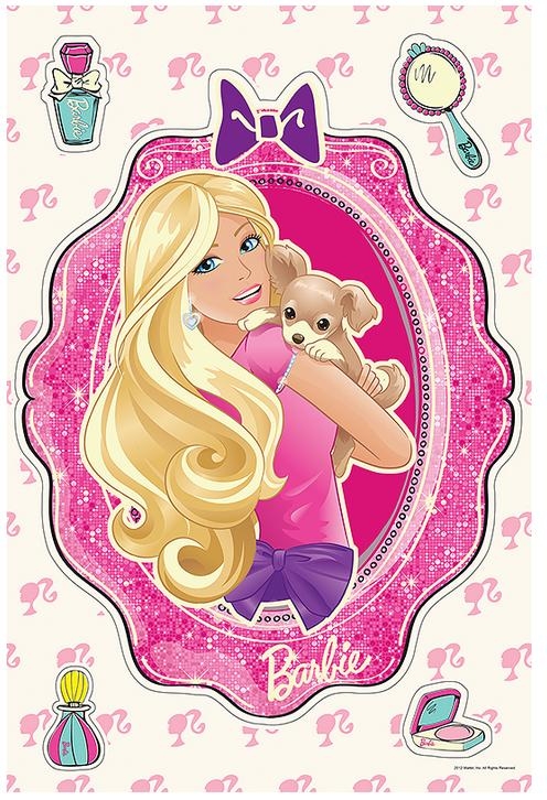 Barbie - Puzzle Magic DecorMAGIC DECOR to duże, świecące w ciemności puzzle, którymi można również ozdobić pokój dziecka! Zastosowanie specjalnej techniki, sprawia, że układanka wystawiona na promienie słoneczne lub sztuczne światło będzie świeciła w ciemności! Po ułożeniu powstanie obrazek o wymiarach 60x40 cm przedstawiający Barbie z jej małym pupilem.W skład produktu wchodzą: puzzle 15-elementowe, ramka pocięta na puzzle z dodatkowymi wyciskanymi elementami do zakomponowania.