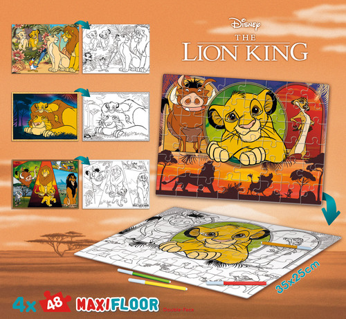 Baw się świetnie odtwarzając najlepsze sceny z animacji Króla Lwa! Układaj dwustronne puzzle, tworząc piękny obrazek lub koloruj jego czarno-biały odpowiednik, starając się odtworzyć kolory z kreskówki lub nadając całej scence nowego charakteru. Produkt zawiera 192 elementy, które umożliwiają odtworzenie czterech scenek składających się z 48 elementów.