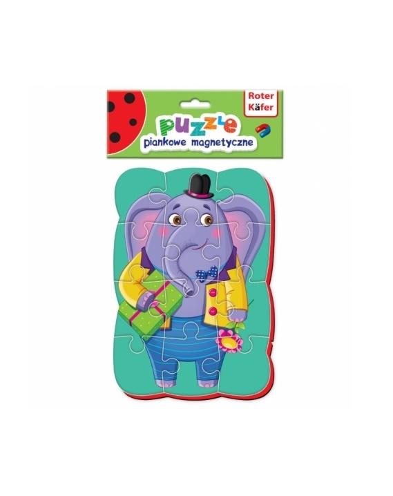 Śliczny obrazek magnetyczny przedstawiający słonika-dżentelmena pomoże maluchowi nauczyć się koncentrować uwagę, ćwiczy drobną motorykę, uczy cierpliwości. To właśnie puzzle są pierwszą zabawką dzieci, dlatego powinny być wygodne w układaniu i miłe w dotyku. Puzzle magnetyczne Roter Käfer są zrobione ze spienionego materiału, co powoduje, iż są one lekkie i miękkie. Puzzle składają się z 12 części. Dla ułatwienia na spodzie opakowania znajduje się obrazek przedstawiający puzzle po ułożeniu.