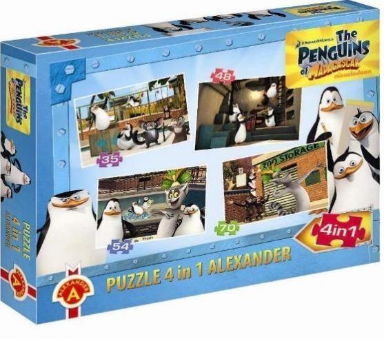 "Puzzle Alexander" rozwijają zdolności manualne, pobudzają ciekawość, spostrzegawczość oraz zdolność kojarzenia Układanie puzzli to dla dzieci dobry trening zręczności, myślenia, percepcji i właściwego kojarzenia koloru i kształtu. W pudełku 4 różne zestawy puzzli. Z 35, 48, 54 lub 70 elementów układanki można ułożyć 4 obrazki o wymiarach 33 x 22 cm.