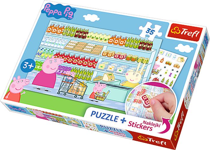 Puzzle Plus 35 elementów z bohaterami filmu animowanego Świnka Peppa. Po ułożeniu powstanie obrazek o wymiarach 33 x 22 cm. Do puzzli dołączone są naklejki. Wysoką jakość, nasycenie kolorów i bezpieczeństwo układania zapewnia kalandrowany papier odbijający światło, pokryty ekologicznymi farbami spożywczymi.