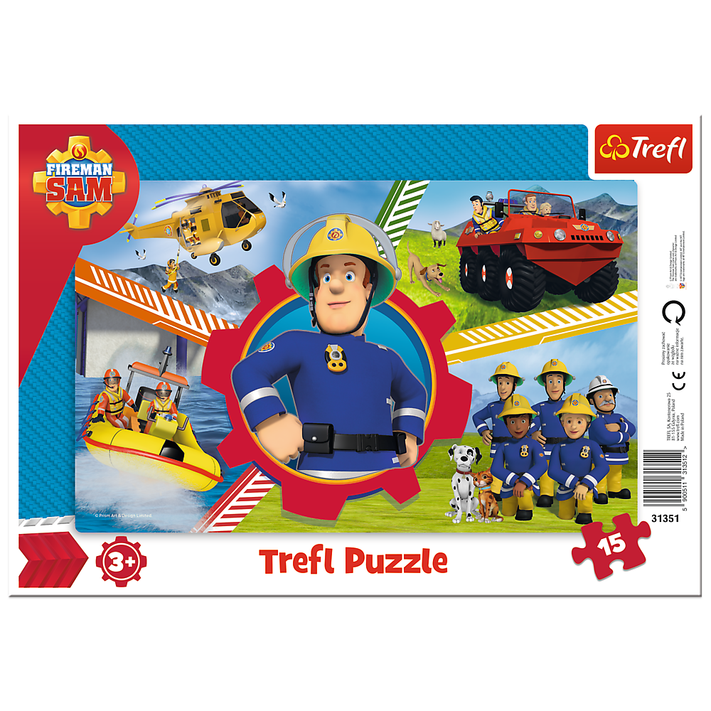 Puzzle ramkowe 15 elementów z bohaterami uwielbianej przez dzieci bajki Strażak Sam.
