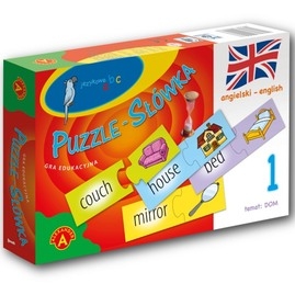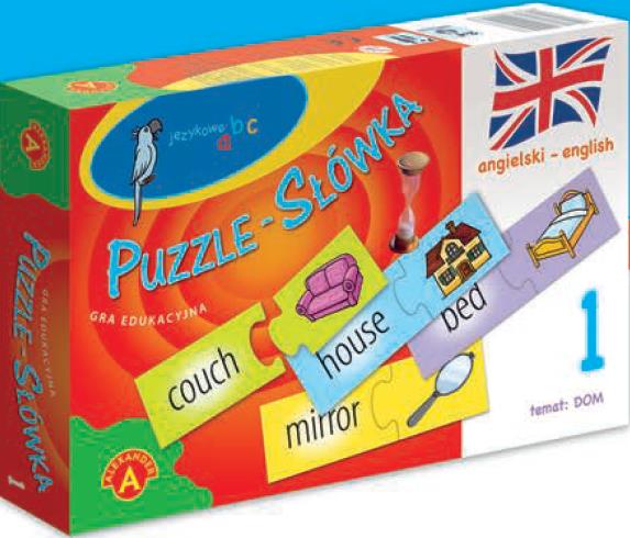 ,,Puzzle-Słówka"", to gra i zabawka dla dzieci, któreumieją już czytać i można je zachęcić do nauki językaangielskiego. Zabawka zawiera 30 dwuczęściowychelementów. Na jednej części znajduje się obrazek, a nadrugiej jego angielska nazwa. Znajdowanie i łączeniepasujących do siebie par puzzli, umożliwiaindywidualną zabawę, w której dziecko może poznaćpierwsze angielskie słowa.