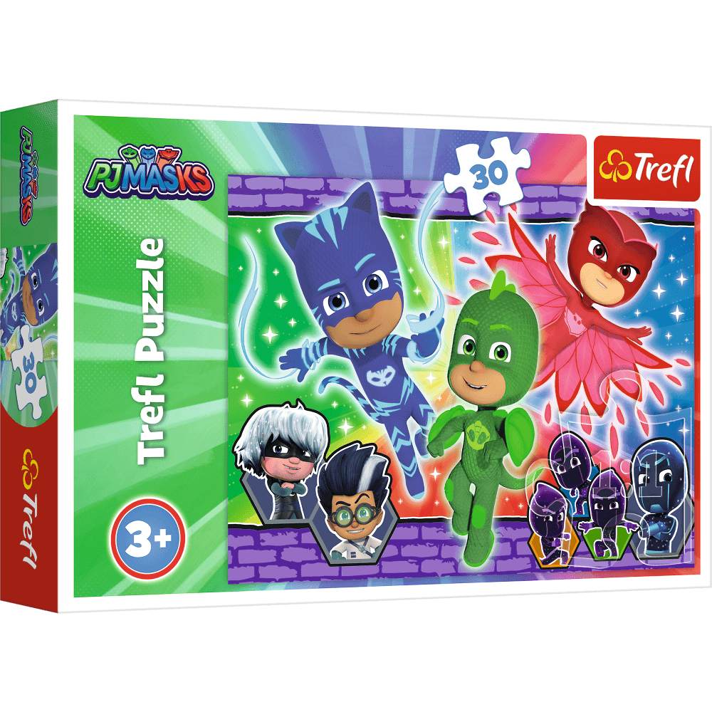 Puzzle 30 elementów z bohaterami filmu animowanego pt. "Pidżamersi". Po ułożeniu powstanie obrazek o wymiarach 200x270mm. Wysoką jakość, nasycenie kolorów i bezpieczeństwo układania zapewnia wykorzystanie materiałów ekologicznych.