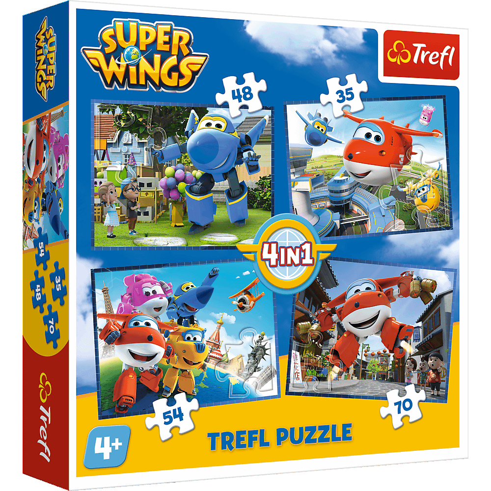 Nie jedna, nie dwie, ale aż cztery układanki zamknięte w jednym pudełku to prawdziwa gratka dla miłośników puzzli! Po ułożeniu otrzymamy cztery obrazki różnej wielkości z postaciami bajki Super Wings. Zestaw doskonale spełnia oczekiwania rodzeństwa - każdy ułoży swój ulubiony obrazek nawet w tym samym czasie. Zróżnicowana liczba elementów pozwala na zabawę zarówno młodszym, jak i nieco starszym dzieciom. Dodatkowym urozmaiceniem zabawy może być układanie na czas, porównywanie obrazków, szukanie różnic i podobieństw. Piękna grafika w stylu Disneya i możliwość wspólnego tworzenia to powody, dla których dzieci uwielbiają układać puzzle.