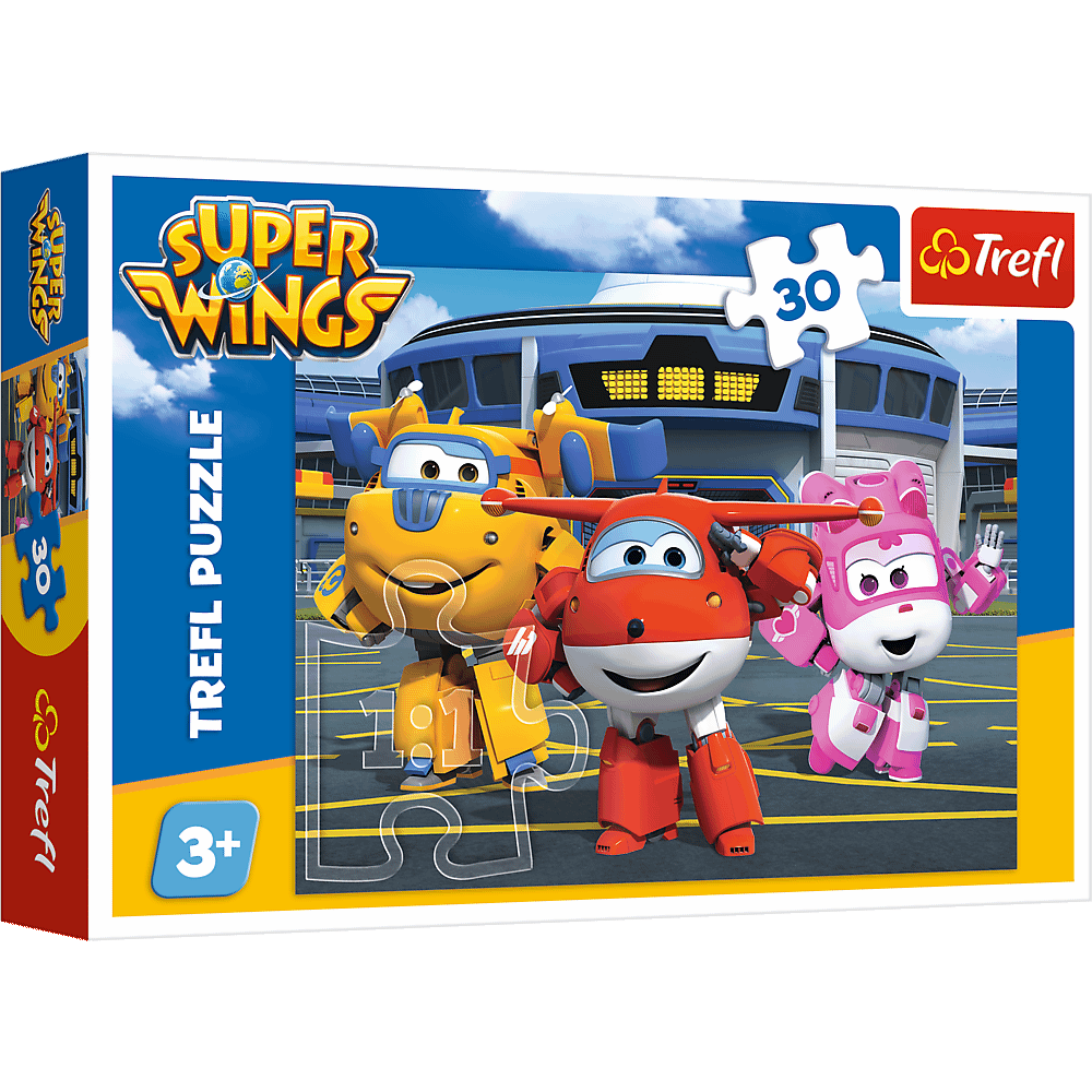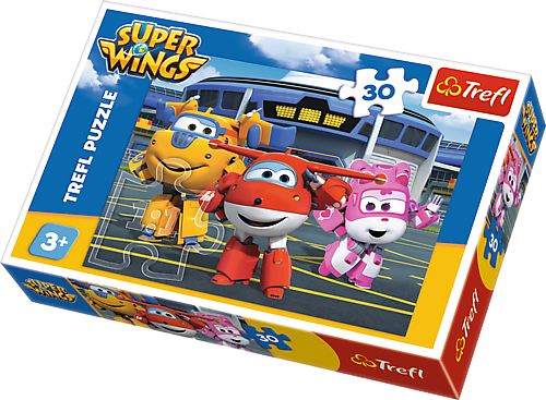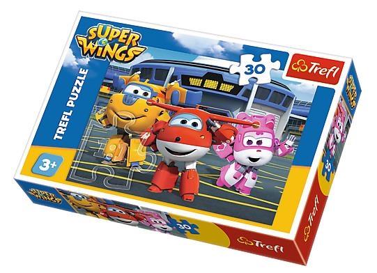 Puzzle 30 elementów z boahterami filmu animowanego ""Super Wings"". Po ułożeniu powstanie obrazek o wymiarach 27x20 cm. Wysoką jakość, nasycenie kolorów i bezpieczeństwo układania zapewnia kalandrowany papier odbijający światło, pokryty ekologicznymi farbami spożywczymi.