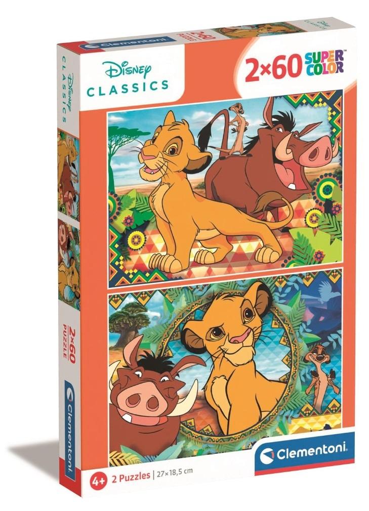 Puzzle SuperColor Lion King Do ułożenia dwa obrazki o wymiarach: 27 x 19 cm. Każdy obrazek składa się z 60 elementów