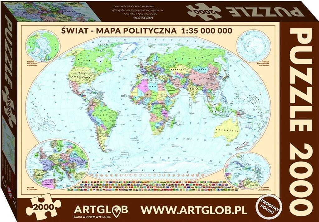 Puzzle z aktualną mapą polityczną świata, mogą pełnić rolę zarówno edukacyjną, jak i zabawową.