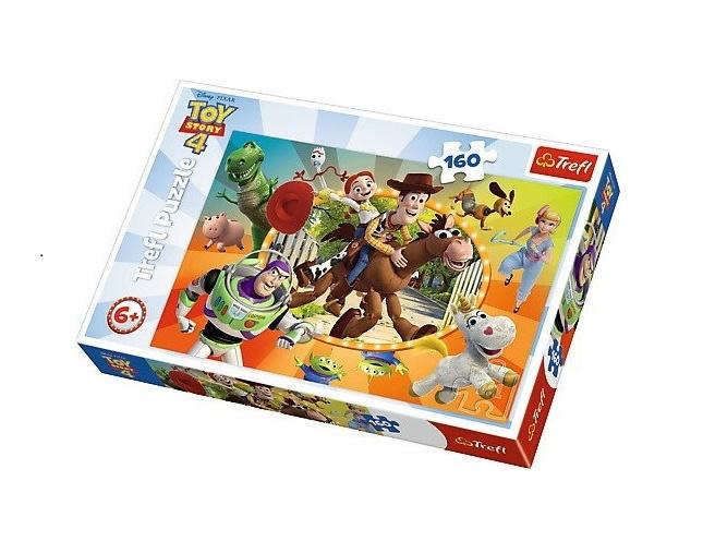 Puzzle 160 elementów z bohaterami bajki Toy Story. Po ułożeniu powstanie obrazek o wymiarach 41x27,8cm. Wysoką jakość, nasycenie kolorów i bezpieczeństwo układania zapewnia kalandrowany papier odbijający światło i wykorzystanie materiałów ekologicznych.