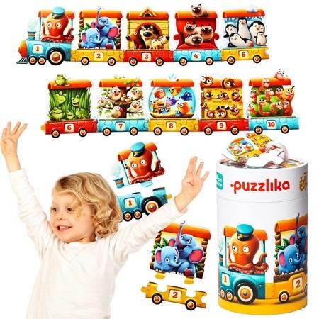 Układanie puzzli to nie tylko zabawa, ale także rozwijanie umiejętności dziecka. Produkt umożliwia maluchowi zapoznanie się z różnymi kształtami i kolorami, wspomaga rozwój motoryki małej, logicznego myślenia oraz koncentracji, a przede wszystkim uczy malucha podstaw matematyki. Zadaniem dziecka jest policzenie ile zwierzątek znajduje się w danym wagonie i dopasowanie ich do odpowiedniej części z numerami.