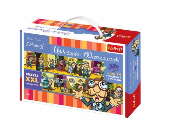 TREFL - świat puzzli, w którym nuda nie istnieje. Są źdródłem zabawy i przyjemności.To podarunek dla każdego - dziecka i dorosłego. Zapraszamy na niesamowite chwile z puzzlami Trefl. Przedstawiamy Państwu oryginalną kolekcję puzzli dla najmłodszych stworzoną w oparciu o ulubione wiersze Juliana Tuwima. Puzzle adresowane są do rodziców, którzy w trosce o rozwój swoich pociech, chcą im przybliżyć cudowny świat bajek. Dziecko słuchając wierszy czytanych przez rodzica, układa puzzlowy obrazek, odwzorowując tym samym słyszany tekst. Taka wspólna zabawa rozwija u dzieci wyobraźnię i pamięć słuchowo-zwrokową. Zestaw składa się z 14 dużych puzzli podłogowych oraz książeczki z wierszem.