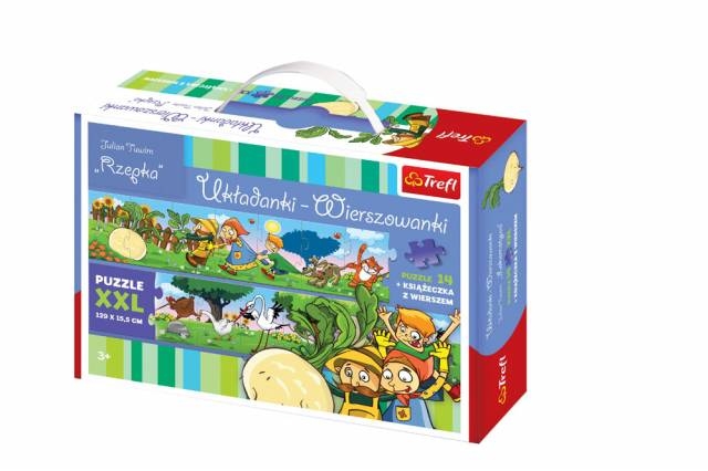 TREFL - świat puzzli, w którym nuda nie istnieje. Są źdródłem zabawy i przyjemności.To podarunek dla każdego - dziecka i dorosłego. Zapraszamy na niesamowite chwile z puzzlami Trefl. Przedstawiamy Państwu oryginalną kolekcję puzzli dla najmłodszych stworzoną w oparciu o ulubione wiersze Juliana Tuwima. Puzzle adresowane są do rodziców, którzy w trosce o rozwój swoich pociech, chcą im przybliżyć cudowny świat bajek. Dziecko słuchając wierszy czytanych przez rodzica, układa puzzlowy obrazek, odwzorowując tym samym słyszany tekst. Taka wspólna zabawa rozwija u dzieci wyobraźnię i pamięć słuchowo-zwrokową. Zestaw składa się z 14 dużych puzzli podłogowych oraz książeczki z wierszem.