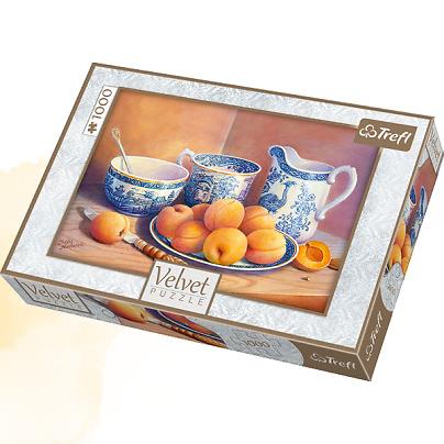 Morelowy deser - Puzzle VelvetUżycie unikatowej powłoki, która w dotyku przypomina aksamit - nadaje kolekcji puzzli Velvet niepowtarzalny charakter. Ponadto powłoka ta w znacznym stopniu niweluje efekt odbijania się światła na puzzlach, co sprawia, że obrazy zyskują głębię, ich faktura zostaje podkreślona, a układanie puzzli staje się prawdziwą przyjemnością. Po ułożeniu powstanie obrazek o wymiarach 68x48cm.