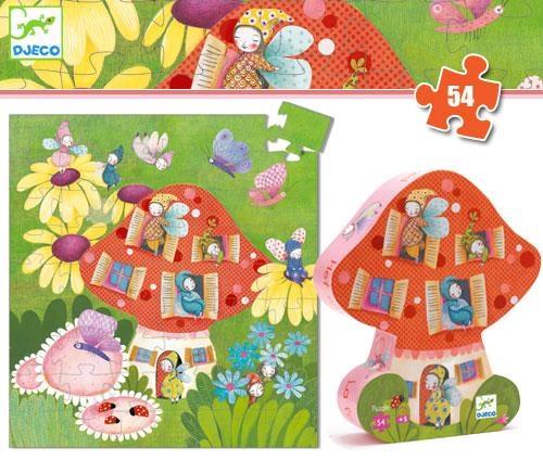 Tekturowe 54 elementowe puzzle przedstawiającego elfy miekszkające w grzybowym domku.Całość zapakowana w bardzo efektowne pudełko o nieregularnych kształtach.Walory edukacyjne:rozwój spostrzegawczośći,koncentracji,wyobraźni.Wiek dziecka 5 Lata +.Wielkość obrazka 40 x 37 cm.Wymiary pudełka :26,5 x 27 x 6 cm