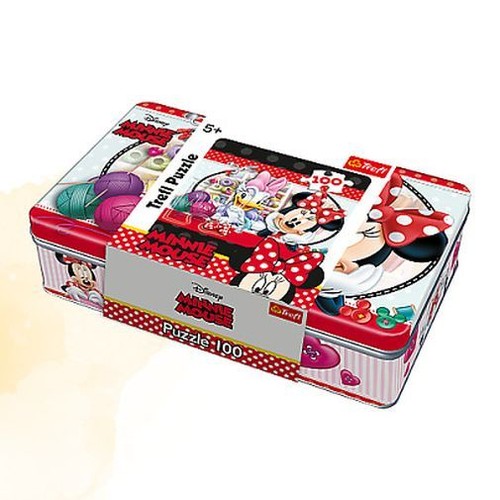 Puzzle 100-elementowe z Myszką Minnie w wyjątkowym opakowaniu. Po ułożeniu powstanie obrazek o wymiarach 41x27,8 cm. Wysoką jakość, nasycenie kolorów i bezpieczeństwo układania zapewnia kalandrowany papier odbijający światło i wykorzystanie materiałów ekologicznych.