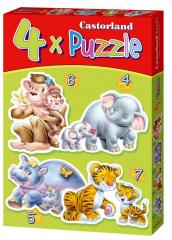 4x Puzzle to 4 układanki w jednym pudełku zawierające 8#12#15#20 elementów! Konturowe puzzle dla najmłodszych, składające się z czterech oddzielnych obrazków o zróżnicowanym stopniu trudności. Żywe kolory, odpowiednio dobrane wzornictwo oraz duże elementy sprawiają, że małe dziecko z łatwością ułoży każdy obrazek. Puzzle te zapraszają do poznania fascynującego świata bajek zwierząt i motoryzacji. Pomagają rozwinąć zdolność kojarzenia oraz zwiększyć sprawność manualną.Format jednego obrazka 32 x 23 cm