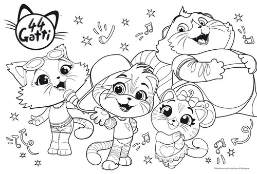 Wyjątkowe puzzle dwustronne inspirowane bajką 44 Koty. Opowiada ona o przygodach 4 kotów, które postanawiają stworzyć zespół muzyczny zwany Arcykotami. Jako miejsce ich schadzek wybierają stary garaż, który po zaadaptowaniu służy również jako miejsce spotkań innych bezdomnych kotów z okolicy. Zawartość opakowania umożliwia ułożenie obrazka o rozmiarze 70x35 cm, który widnieje na opakowaniu, a także pokolorowanie jego czarno-białego szablonu znajdującego się na odwrocie.