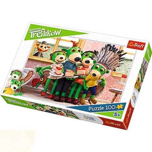Puzzle 100 elementów z bohaterami serialu animowanego ""Rodzina Treflików"". Po ułożeniu powstanie obrazek o wymiarach 41x27,8 cm. Wysoką jakość, nasycenie kolorów i bezpieczeństwo układania zapewnia kalandrowany papier odbijający światło i wykorzystanie materiałów ekologicznych.