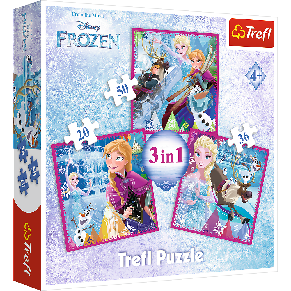 "Zimowa magia" z bohaterami bajki "Kraina lodu" to trzy układanki różnej wielkości.